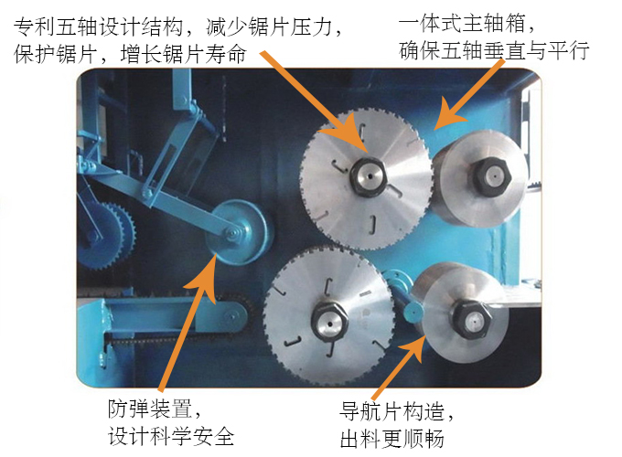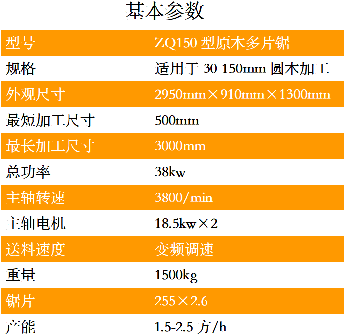ZQ150型圓木多片鋸鋸 片:選用德國高品質(zhì)進口鋼板做底板的鋸片,耐熱、耐磨、不易變形。