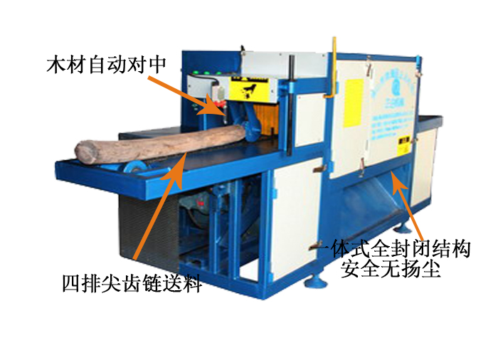 送 料:采用四排尖齒鏈條輸送,機上配有變頻智能調(diào)速器,可以對大小木料的進料速度實行自由調(diào)速。原木可以實現(xiàn)自動分中,機上還配有限位開關,防止超去規(guī)格木料進入,防止卡木避免對機器造成損壞。