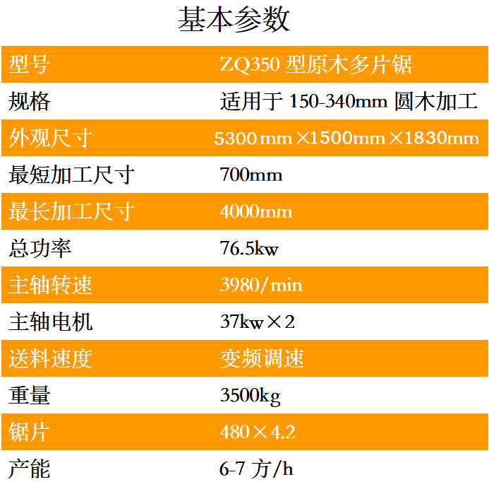 ZQ350型原木多片鋸是一種用于原木的開破以及分片的高性能專用機械,可根據客戶要求訂做各種規格的木板,提高木材的最大利用率