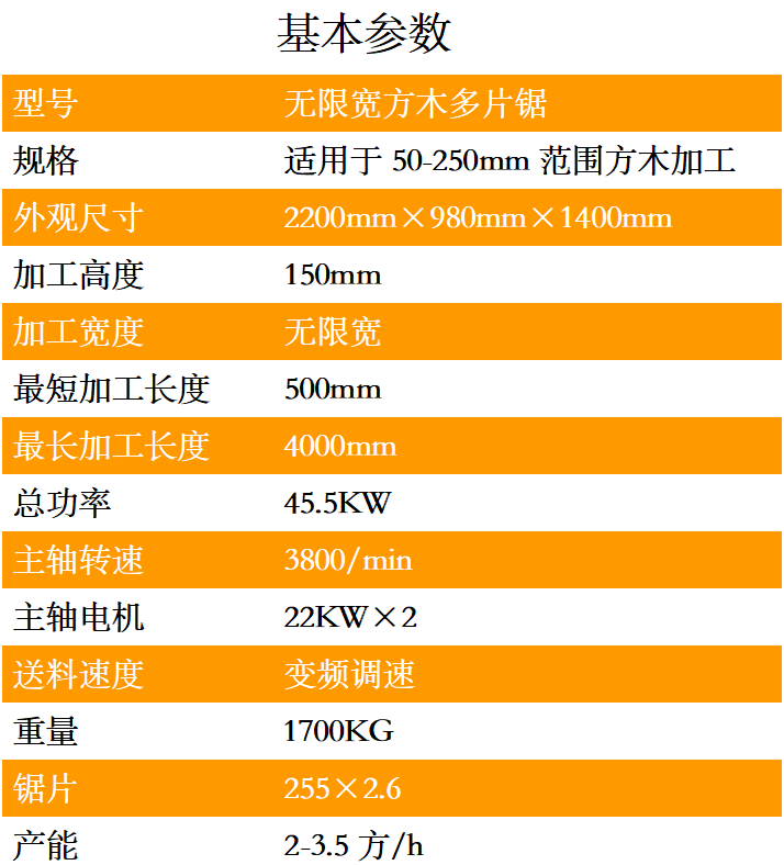 1.方木多片鋸采用獨(dú)立5條滾軸傳動(dòng)設(shè)計(jì),可以保證同一個(gè)平面線上,送料平穩(wěn)。