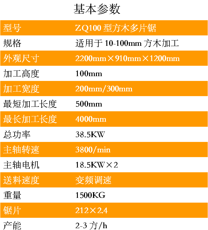 1.ZQ100型方木多片鋸采用獨立5條滾軸傳動設計,可以保證同一個平面線上,送料平穩。