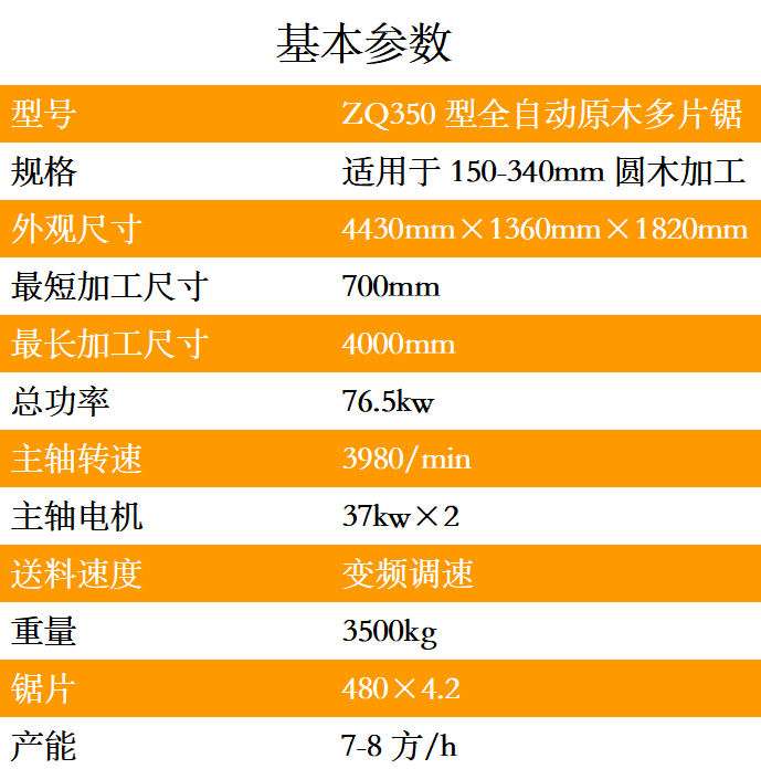 ZQ350型全自動原木多鋸片是一種用于原木的開破以及分片的高性能專用機械