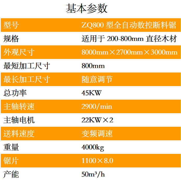 ZQ800型全自動數控斷料鋸是一種用于截斷圓木的專用機械,可取代傳統的斷木設備。本機是上下鋸設計,采用手自一體的液壓驅動,PLC數字控制系統,只需一名普通工人便可輕松操控,穩定性高,加工表面平整光潔,公差在2MM之內,截斷范圍可以隨意調節。加工長度和速度均可根據實際所需規格隨意調節,效率高,是傳統截斷機的2-5倍。鋸片配進口合金鋸片,使用壽命長.適用于原生木材,板材板方的切斷加工.本設備采用輸送臺自動進料,自動感應壓料,自動截斷,輸送臺自動出料等先進裝備,具有操作簡單,安全,效率快,切斷長短可隨意設定,省時省工,大大減輕操作者勞動強度等優點.