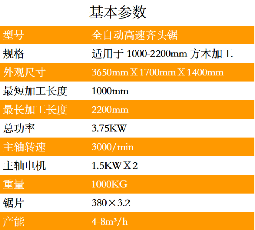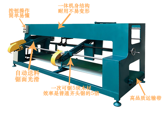 全自動高速齊頭鋸一體式機(jī)身設(shè)計、采用國標(biāo)鋼材、結(jié)構(gòu)科學(xué)、操作簡單、鋸面光滑、誤差小、效率高、故障率低、維護(hù)簡單、速度可調(diào),一次可以鋸五塊木板,最短1米,最長2.2米,中間尺寸可隨意調(diào)節(jié)