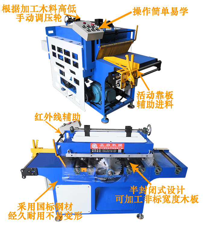 單片修邊鋸用于對木板進行修邊。規格多、送料速度快、修切精度高。安全、高效、穩定!是板料修邊的理想設備!