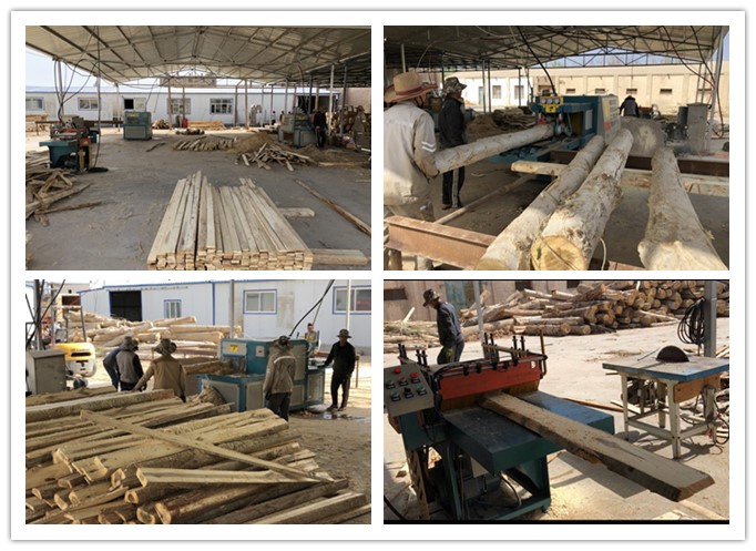 新疆哈密市--雙排鏈原木多片鋸、方木多片鋸、清邊機加工楊木現場